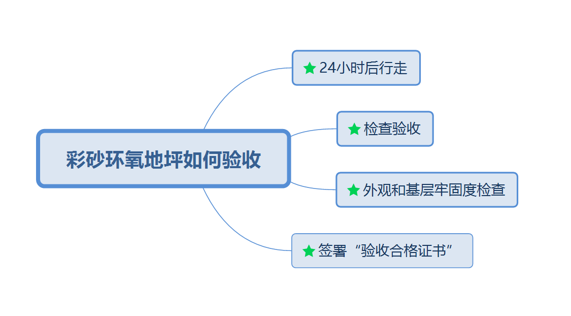 2、檢查驗收:彩砂環氧地坪施工后,由業主和施工商雙方共同檢查驗收。